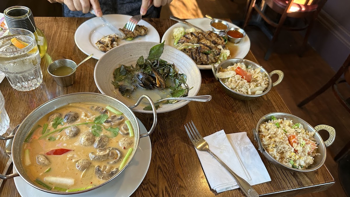 The food is soooo good and the staff are very sweet. It’s my second time coming here and the food was even better than last time, which was already quite delicious. We had mussels for an appraiser, then I had the tom kha gai with fried rice and my mother had the bbq chicken dish, and we finished with some sticky rice. Will be coming back here!